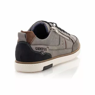 La nuance grise de ces baskets de ville zippées Campus est contrastée de bleu marine sur la doublure intérieure, le contrefort, le laçage et un insert de la semelle de marche. Confortable, robuste et facile à assortir, ce modèle risque bien de devenir un nouveau basique incontournable du vestiaire masculin !