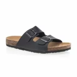 Ces mules en cuir noir sont contrastées par des surpiqûres dans un style naturel. Ce modèle aéré et confortable repose sur une semelle de marche à la texture antidérapante. Il pourrait joliment accompagner un pantalon en toile beige et une chemisette blanche en coton fin par exemple.