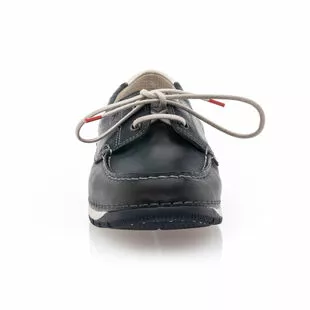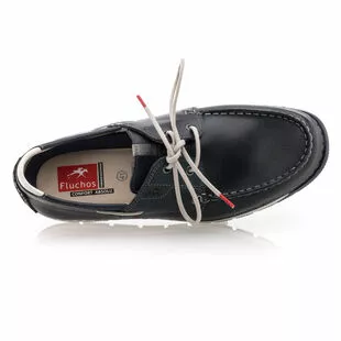 Montés sur une semelle souple antidérapante, ces mocassins Fluchos en cuir bleu marine (tanné de manière artisanale) sont un modèle de très belle qualité. À l’intérieur de la chaussure, on retrouve une semelle de propreté amovible et une doublure en textile microfibre thermorégulateur et anti-transpirant.