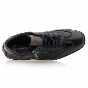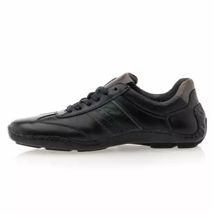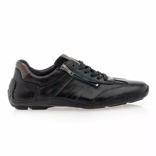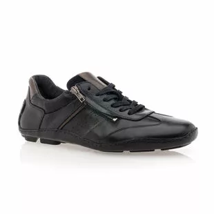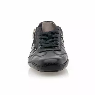 Aussi stylées que confortables, ces baskets de ville en cuir noir souple pour homme séduisent instantanément. On apprécie tout particulièrement leur semelle qui remonte haut sur le talon, dont les larges picots offrent une très bonne accroche. Cette caractéristique est notamment intéressante en situation de conduite.