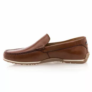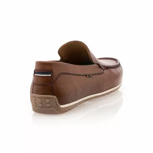 Ces mocassins en cuir lisse cognac présentent des lignes classiques et élégantes. Leur semelle souple et résistante qui remonte haut sur le talon est parsemée de petits picots antidérapants. Ces caractéristiques qui assurent une excellente adhérence seront notamment très appréciées durant la conduite.