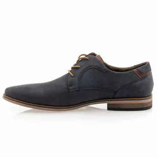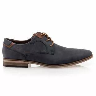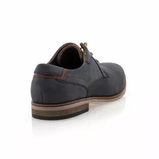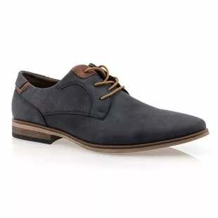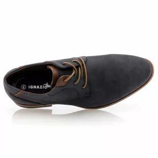 Ces chaussures de ville bleu marine aux détails cognac nous sont proposées par la marque Ignazio. On aura un plaisir fou à les étrenner dans des tenues vestimentaires variées mais toujours stylées. Par exemple avec un pantalon cigarette, une chemise à fines rayures et une veste souple ?
