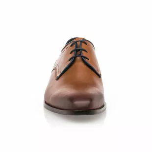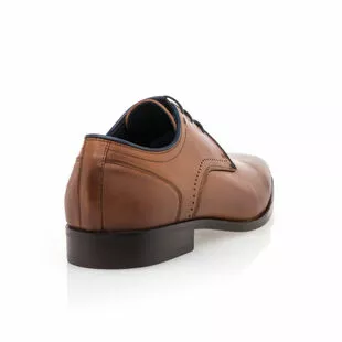 Ces chaussures derbies en cuir cognac (originaire du Portugal) viendront compléter nos tenues soignées avec une grande élégance. Avant de les porter pour la première fois, il est recommandé d’appliquer un soin imperméabilisant. Un entretien régulier permettra également de préserver et même d’embellir leur matière noble.