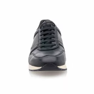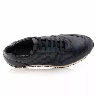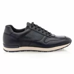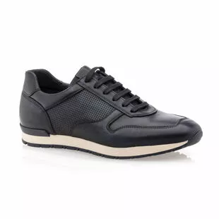 Ces baskets de ville en cuir bleu marine pour homme présentent une texture lisse contrastée d’un empiècement perforé graphique. Elles reposent sur une semelle souple et résistante pourvue d’une finition extérieure crantée antidérapante. Un modèle stylé, pratique et confortable, parfait pour les journées actives !