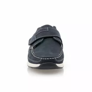 Ces mocassins en cuir bleu disposent d’une large bride auto-agrippante très pratique sur le cou-de-pied. Ils se feront synonymes d’un chaussant souple et confortable, parfait pour les journées actives. Et si on les utilisait pour accompagner un pantalon en toile retroussé aux chevilles et une chemise en lin ?