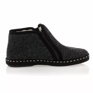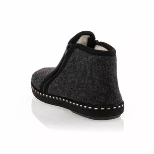 Ces chaussons noirs à fermeture zippée à la forme montante reposent sur une semelle en caoutchouc recyclé respectueux de l’environnement. Au saut du lit comme après une longue journée fatigante, on prendra un grand plaisir à se glisser dans ce modèle confortable, souple et chaleureux !