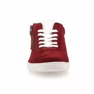 Les adeptes d’une mode urbaine stylée et confortable vont forcément adopter cette paire de baskets en cuir velours rouge. Très pratique, ce modèle dispose d’une petite fermeture zippée en plus de son laçage classique. On aura un plaisir fou à l’étrenner avec tous les looks sympas du moment !